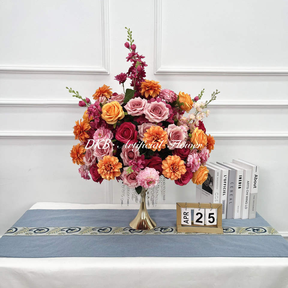 คีย์เวิร์ดของผลิตภัณฑ์:ลูกบอลดอกไม้ประดิษฐ์สำหรับตกแต่งโต๊ะในงานแต่งงานลูกบอลทำจากผ้าไหม