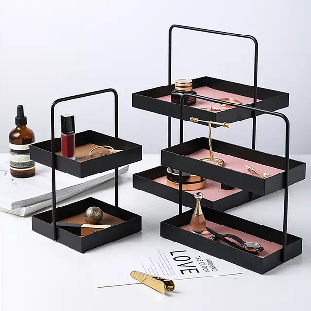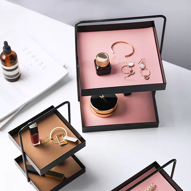 จานผลไม้สองชั้นพร้อมที่จับโครงสร้างโลหะทนทาน