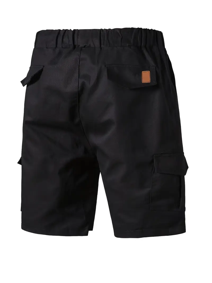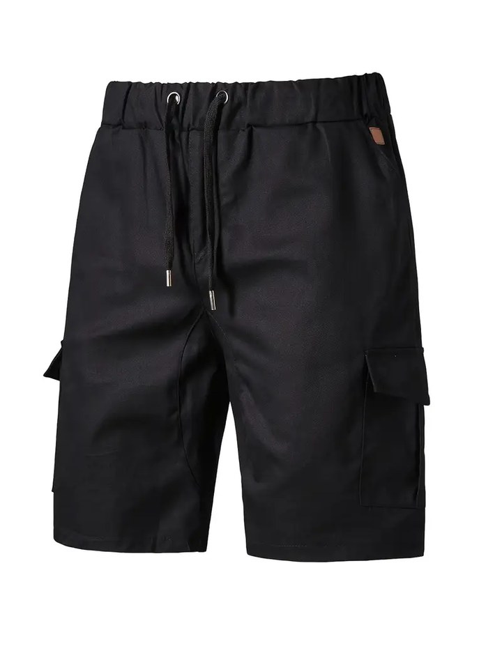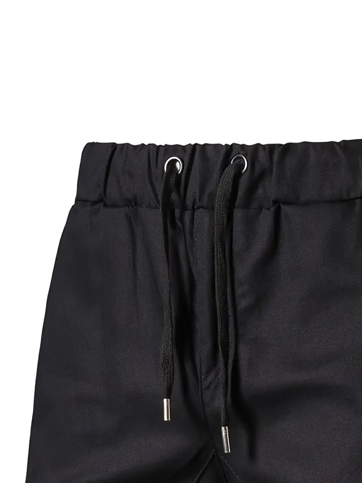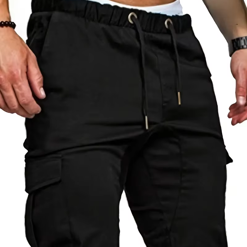 Dropshipping กางเกงคาร์โก้แบบลำลองของผู้ชายผ้าโพลีเอสเตอร์100% สีทึบผ้าไม่ทอสวมใส่ได้พอดีปกติพร้อมเชือกผูก