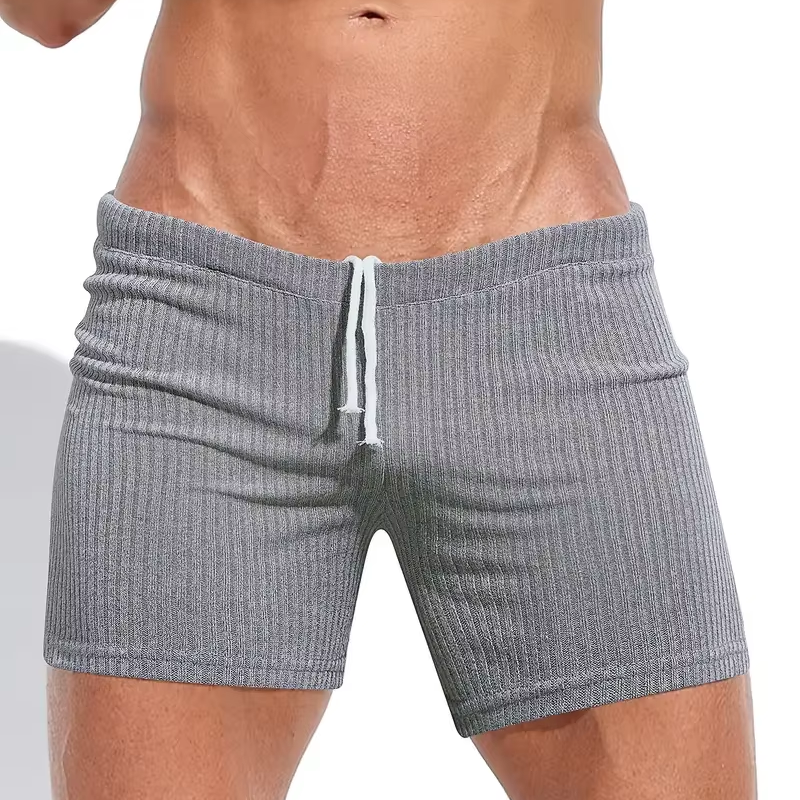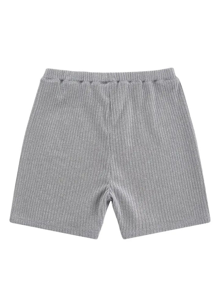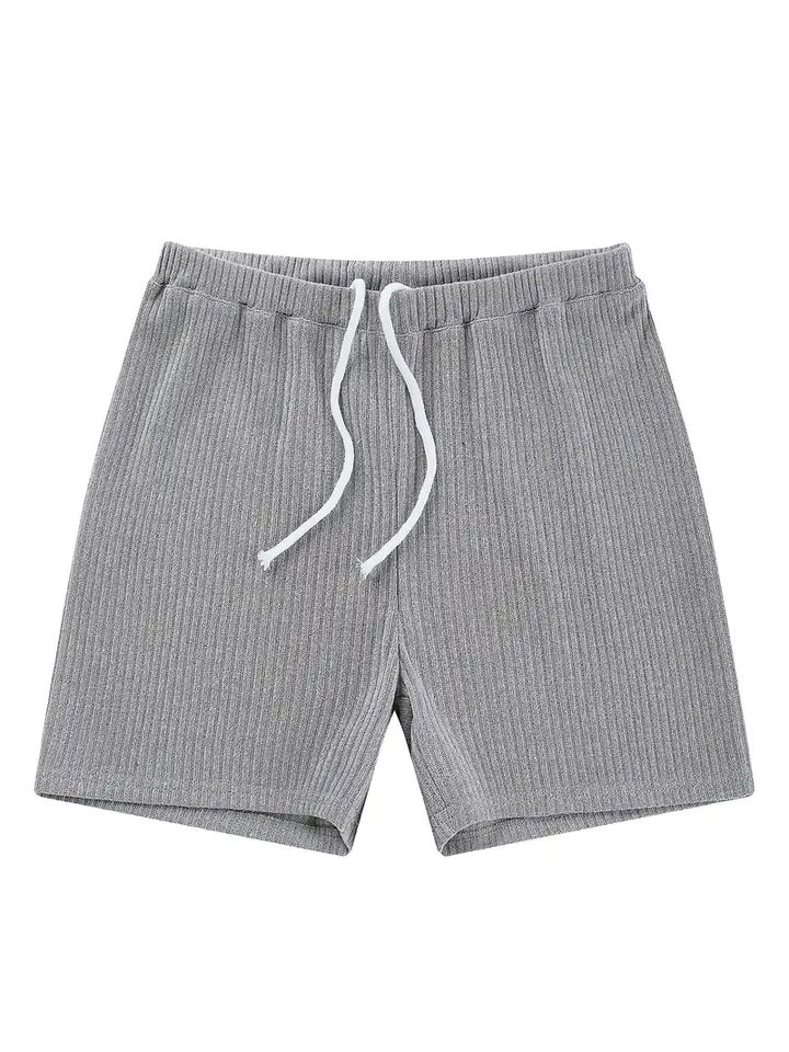Men's Dual-Tone Ribbed Knit Athletic Shorts Stretchy Breathable Polyester Blend Elastic Drawstring Waistband Casual Dropshipping