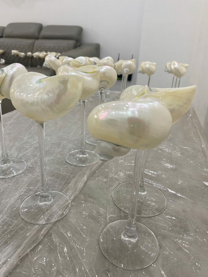 แก้วไวน์ eashell ถ้วยเปลือกหอยทำด้วยมือจากซัพพลายเออร์เวียดนามสำหรับขาย/ถ้วยเปลือกหอยเงินแบบกำหนดเองสำหรับงานปาร์ตี้