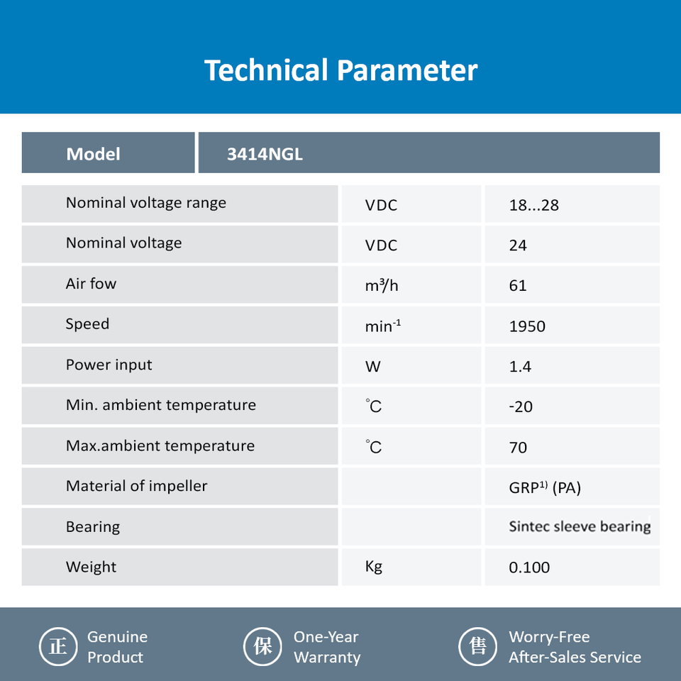 Ebmpapst 3414 NGL ตลับลูกปืน DC 24V 1950RPM 1.4W 92x92x25mm พัดลมระบายความร้อนตามแนวแกน /odm ไฟฟ้า