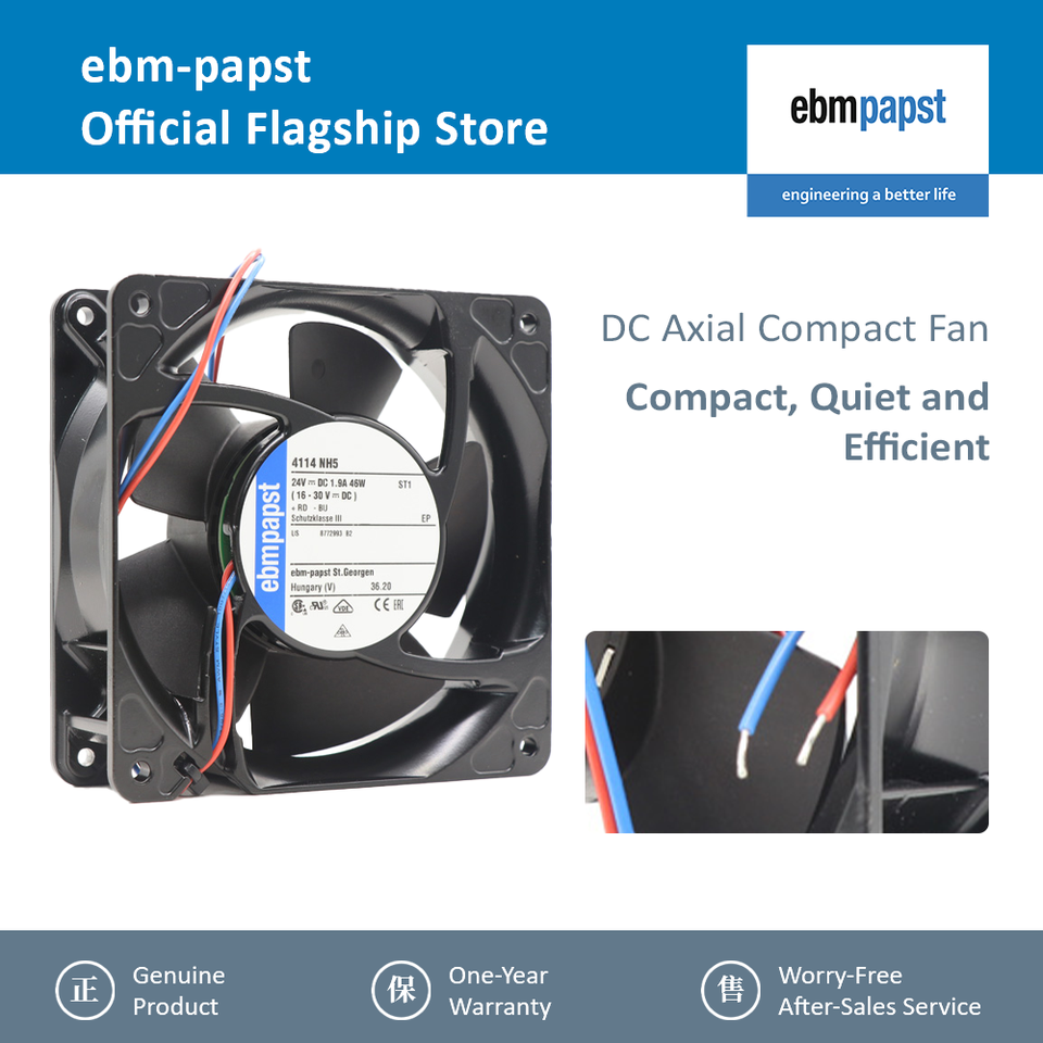 4114NH5 ebmpapst 24V DC 1.9A 45W 119*119*38มม. 12ซม. ปริมาณมากรุนแรงพัดลมระบายความร้อนตามแนวแกนพัดลมไฟฟ้า