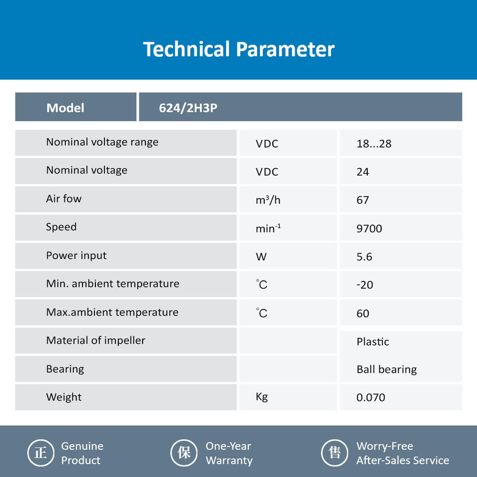 สำหรับ624/2H3P 6025 60x60x25มม. 24VDC 5.6วัตต์67m 3/ชั่วโมง9700รอบต่อนาทีลูกปืน IP20 PWM สายพัดลมระบายความร้อนตามแนวแกน DC