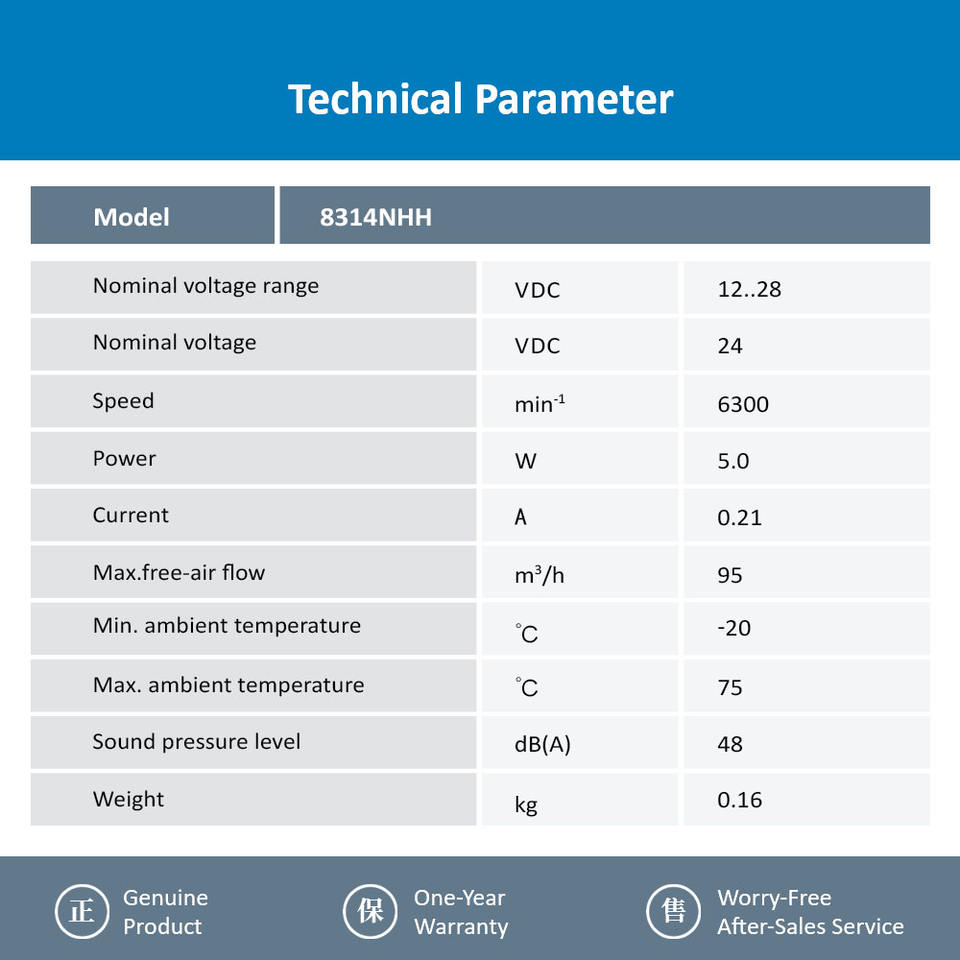 สำหรับ8314NHH 80x80x32มม. 24VDC 6300RPM 5.0W 95m 3 /h แกนลูกปืนพัดลมระบายความร้อน DC