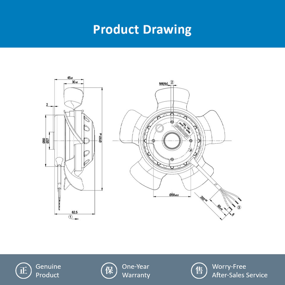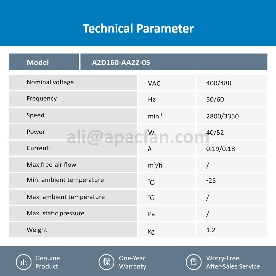 พัดลมระบายความร้อนแบบแกนสำหรับมอเตอร์เซอร์โว Siemens รุ่น 1PH710 ของ ebmpapst A2D160-AA22-05 480V AC 52W 160 มม. 2800 รอบต่อนาที