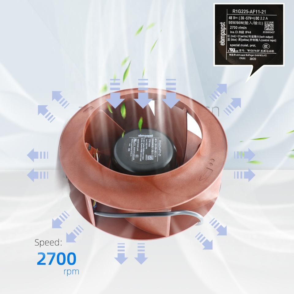 Ebmpapst เครื่องเป่าลม R1G225-AF11-21 48V DC 225มม. 95W 2.2A หัวเว่ยพัดลมหอยโข่ง R1G225-AF11-30พัดลมระบายความร้อน