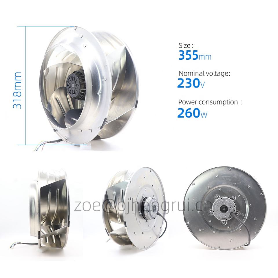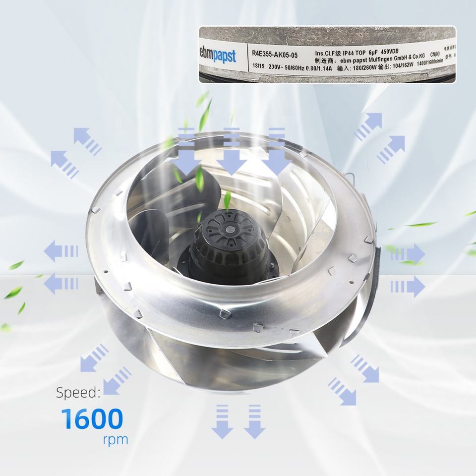 ชุด R4E355-AK05-05 ebmpapst 230V AC 800-2400m3/ชม. 100-300PA HVAC ห้องทำความสะอาด FFU พัดลมระบายความร้อนแบบแรงเหวี่ยง