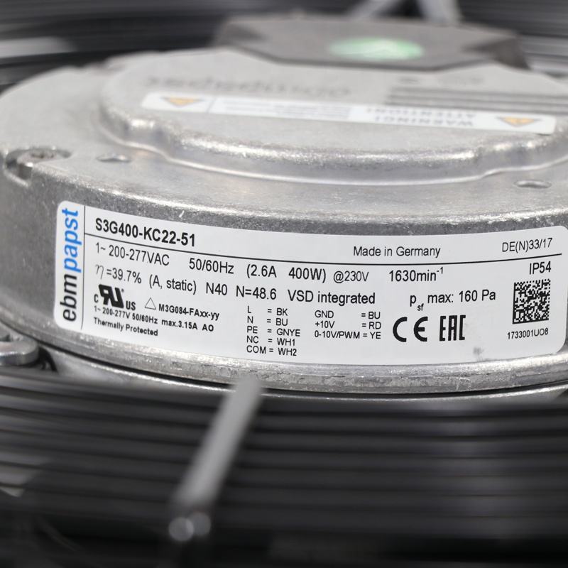 S3G400-KC22-51 ebmpapst 2.6A 400W 230V AC 1630RPM อุปกรณ์การพิมพ์ลูกปืน IP54 EC แกนตู้พัดลมระบายความร้อน