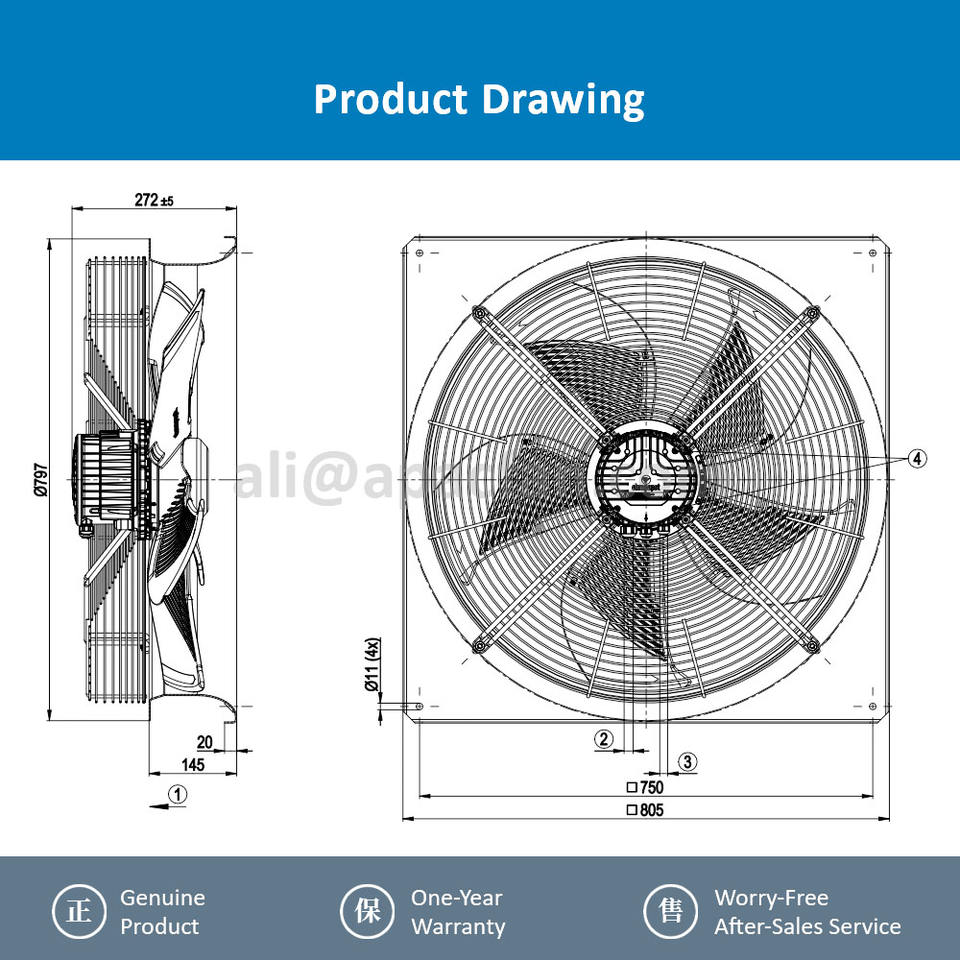 สำหรับ W3G630-NR63-01 400VAC 1150W 1.8A 1260RPM IP55 พัดลมระบายความร้อนแบบแกน 630 มม. พร้อมลูกปืน OEM ODM ไฟฟ้า