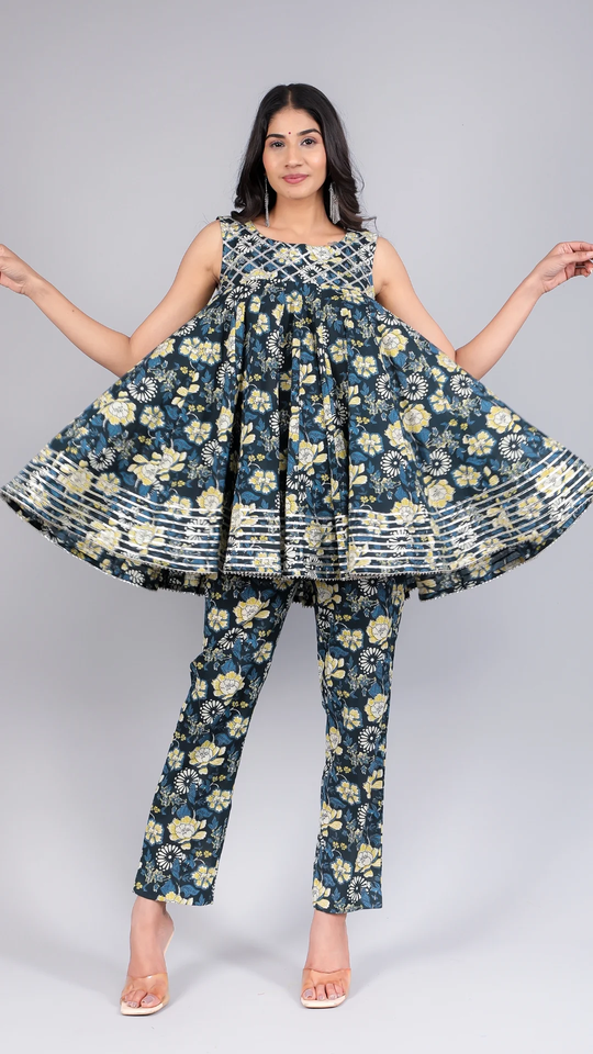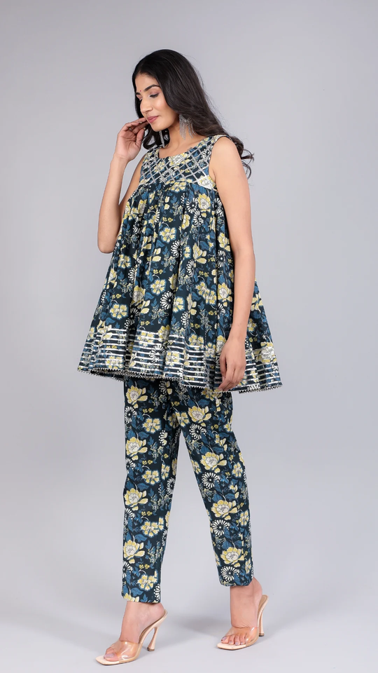 elegant sleeveless floral kurti co-ord set designed to blend comfort with contemporary charm Partywear co-ords set for women