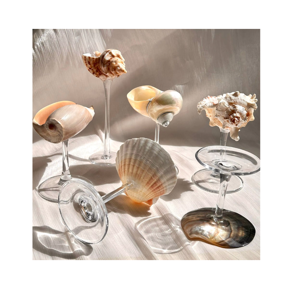 การตกแต่งงานแต่งงานที่หรูหรา: แก้วไวน์เปลือกหอยที่ทำด้วยมือจากเวียดนามถ้วยเปลือกหอยเปลือกหอย