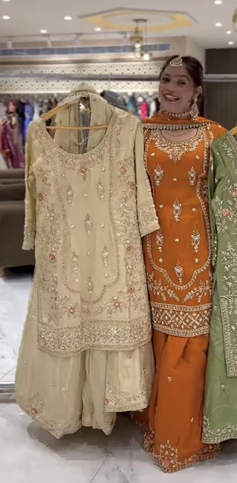 embroidered dress solid pattern sequence embroidery work (liva approved) kurti kneelength washable export selling bulk quantity