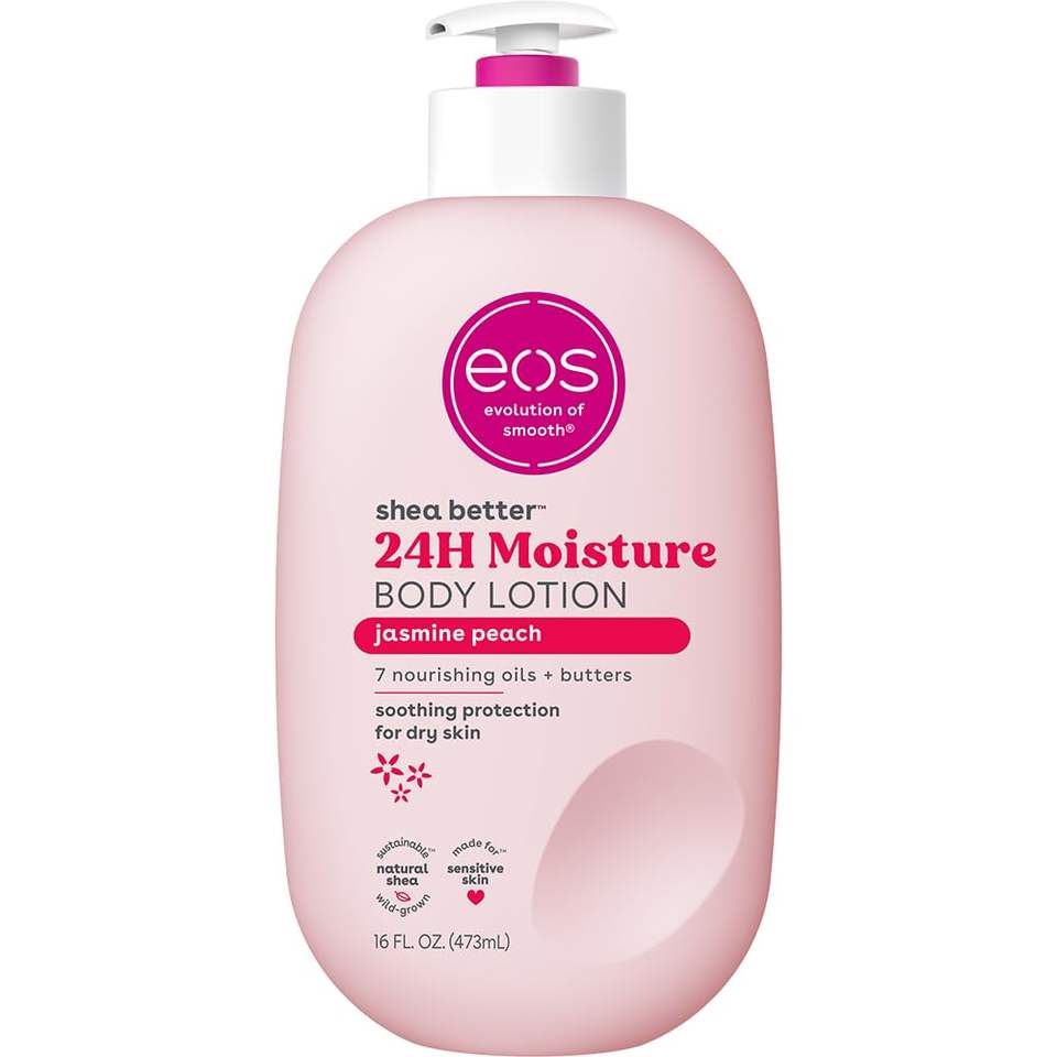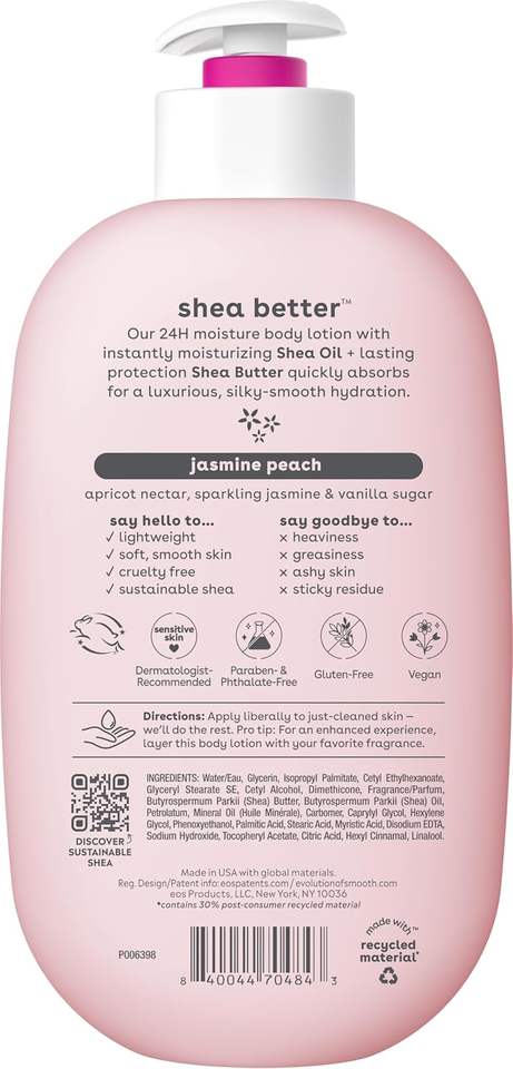 อีออส เชีย บอดี้โลชั่น กลิ่นจัสมินพีช บำรุงผิวชุ่มชื้น 24 ชั่วโมง เนื้อบางเบา ไม่เหนียวเหนอะหนะ ผลิตภัณฑ์จากธรรมชาติ ปราศจากส่วนผสมจากสัตว์ ขนาด 16 ออนซ์