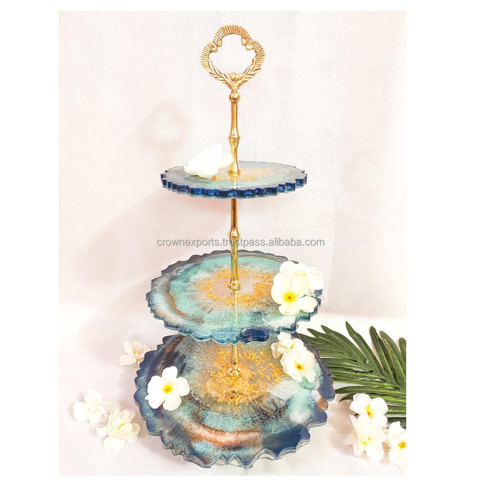 แท่นวางเค้กเรซิ่นอีพ็อกซี่พร้อมสามชั้นถาดเค้กหลายระดับสีตามสั่งแท่นวางเค้กดีไซน์ที่เป็นเอกลักษณ์ล่าสุดสำหรับตกแต่งบ้าน