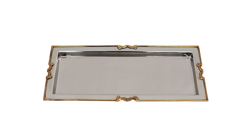 ถาดสำหรับรับประทานอาหารแบบมีที่จับสำหรับวางบนเคาน์เตอร์ขอบสี่เหลี่ยมสีทองสีเทา