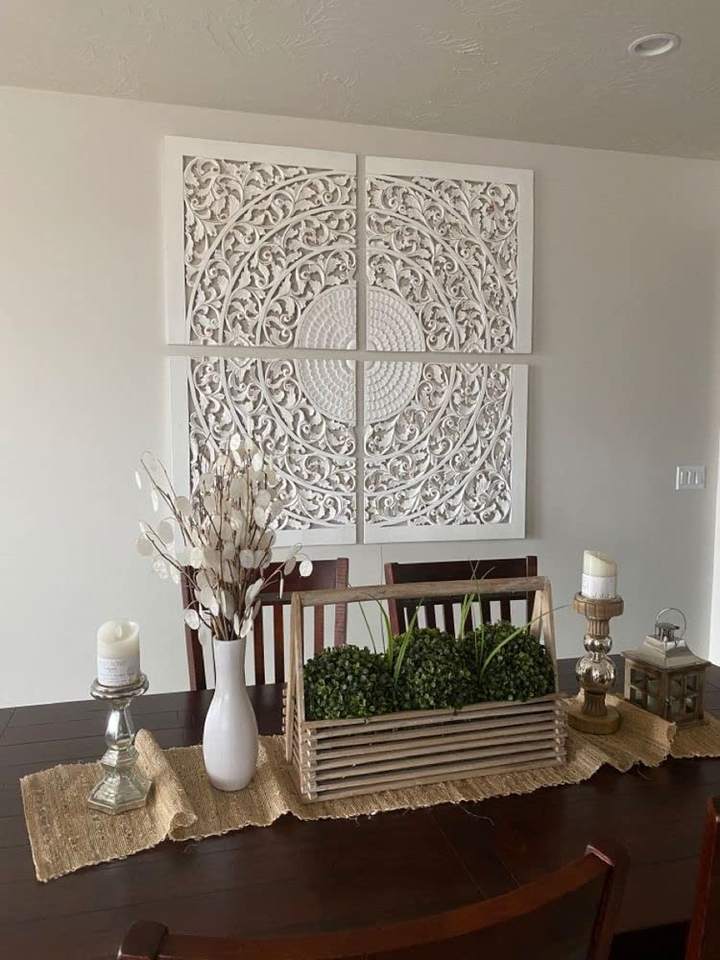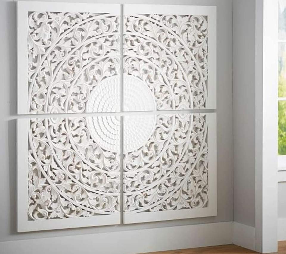 ชุดแผ่นไม้ตกแต่งผนัง 4 ชิ้น งานแฮนด์เมด สีขาวดีไซน์วินเทจ สำหรับห้องนั่งเล่น ห้องนอน ทางเดิน