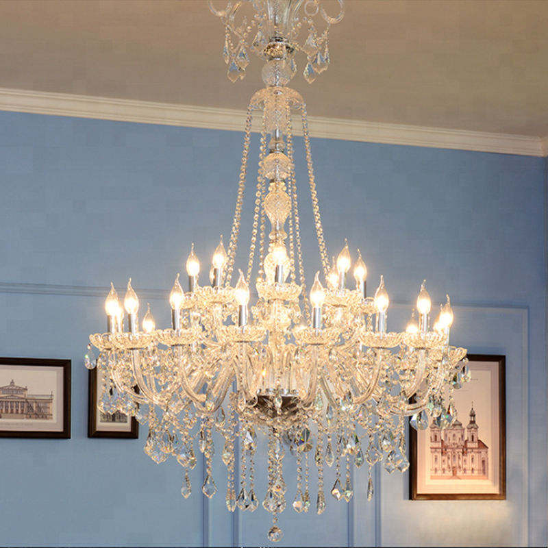 ห้องโถงสไตล์ยุโรปบันไดห้องบอลรูมแก้วคริสตัลหรูหราโคมระย้ายาวสำหรับตกแต่งงานแต่งงาน
