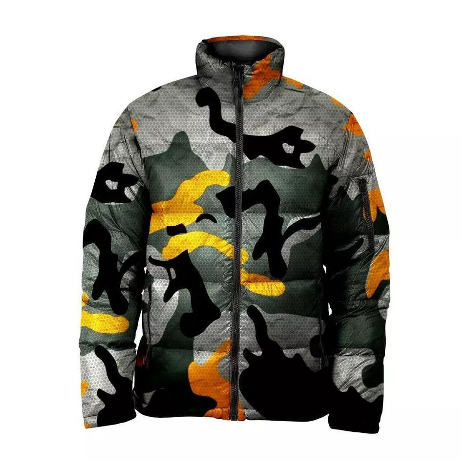 แจ็คเก็ต3D ขนเป็ดแบบซับลิเมชันของผู้ชายผ้าแคนวาสปกคอตั้งเหมาะสำหรับฤดูหนาว