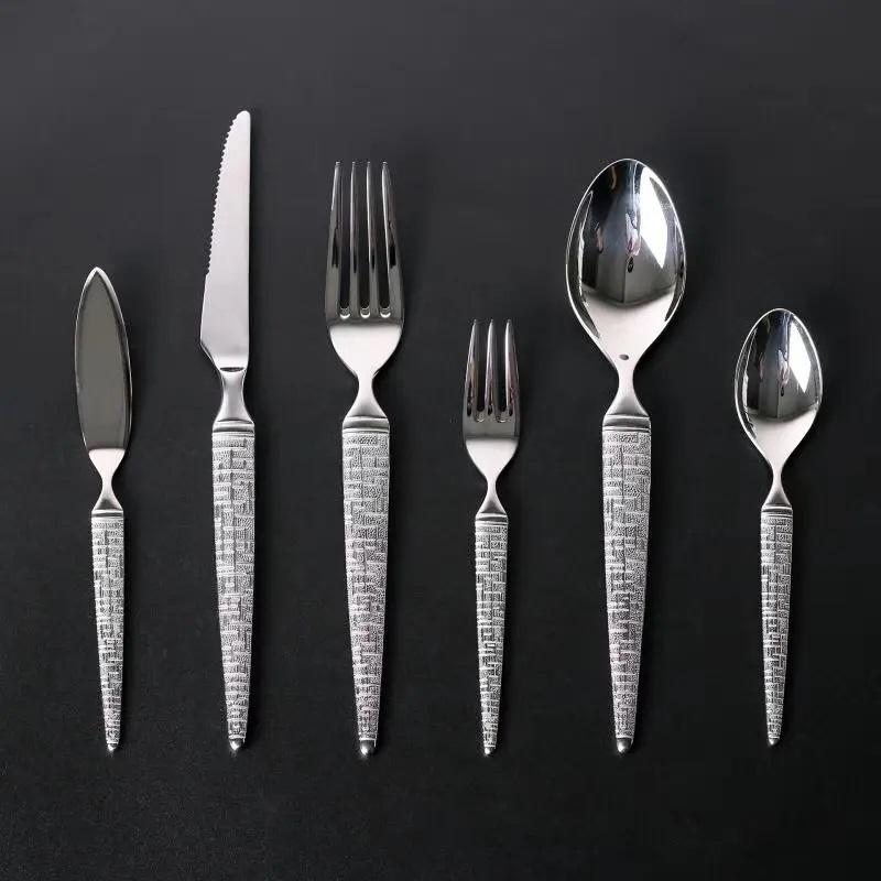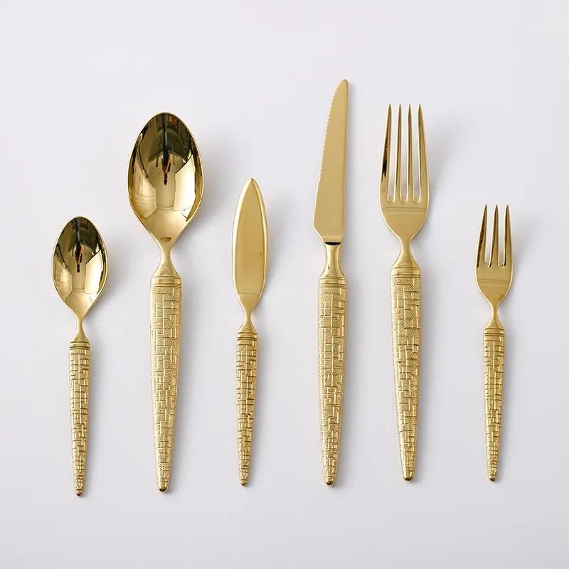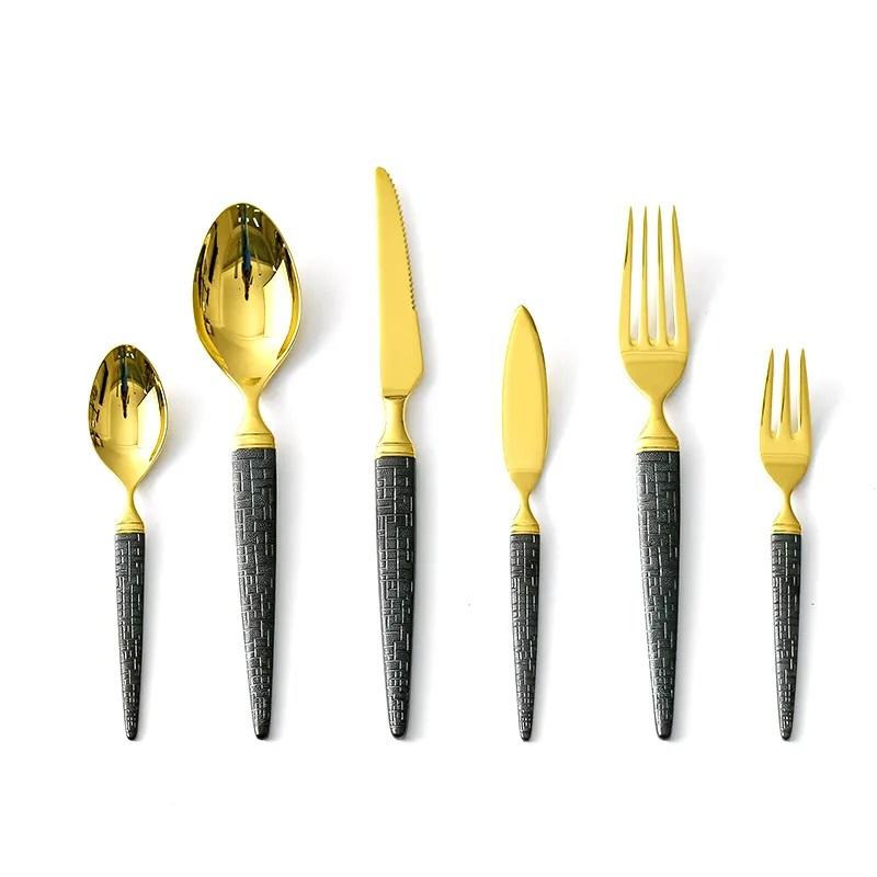 ช้อนส้อมทองสุดหรูพิเศษ PVD สีทองพร้อมมือจับสีดำอุปกรณ์ขัดผิวแบบขัดเงาปลอดภัยและมีสุขภาพดีสำหรับการใช้งานประจำวัน