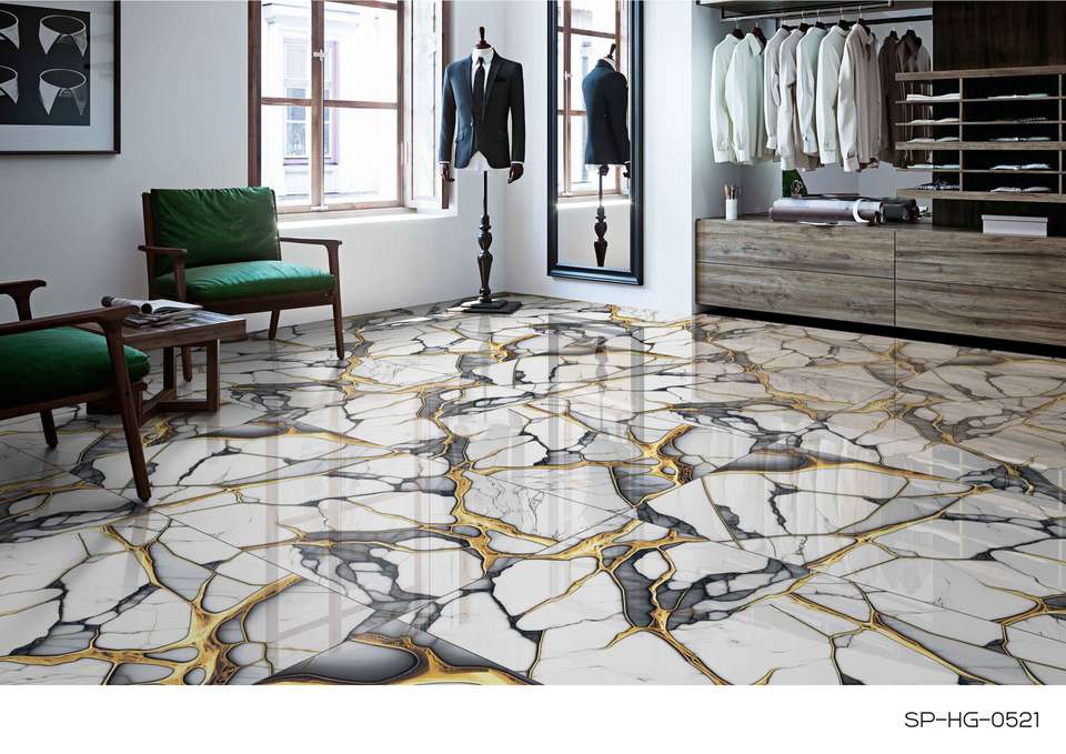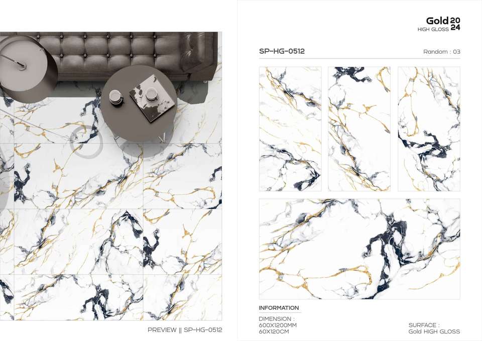 กระเบื้องพอร์ซเลนคุณภาพส่งออก เกรดพรีเมียม ผิวทองเงาสูง ขนาด 60x120 ซม. 600x1200 มม. 24x48 นิ้ว สำหรับตกแต่งภายในระดับพรีเมียม