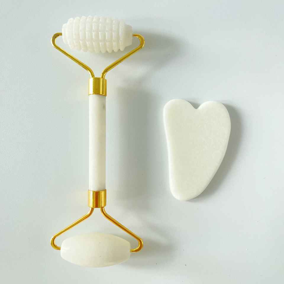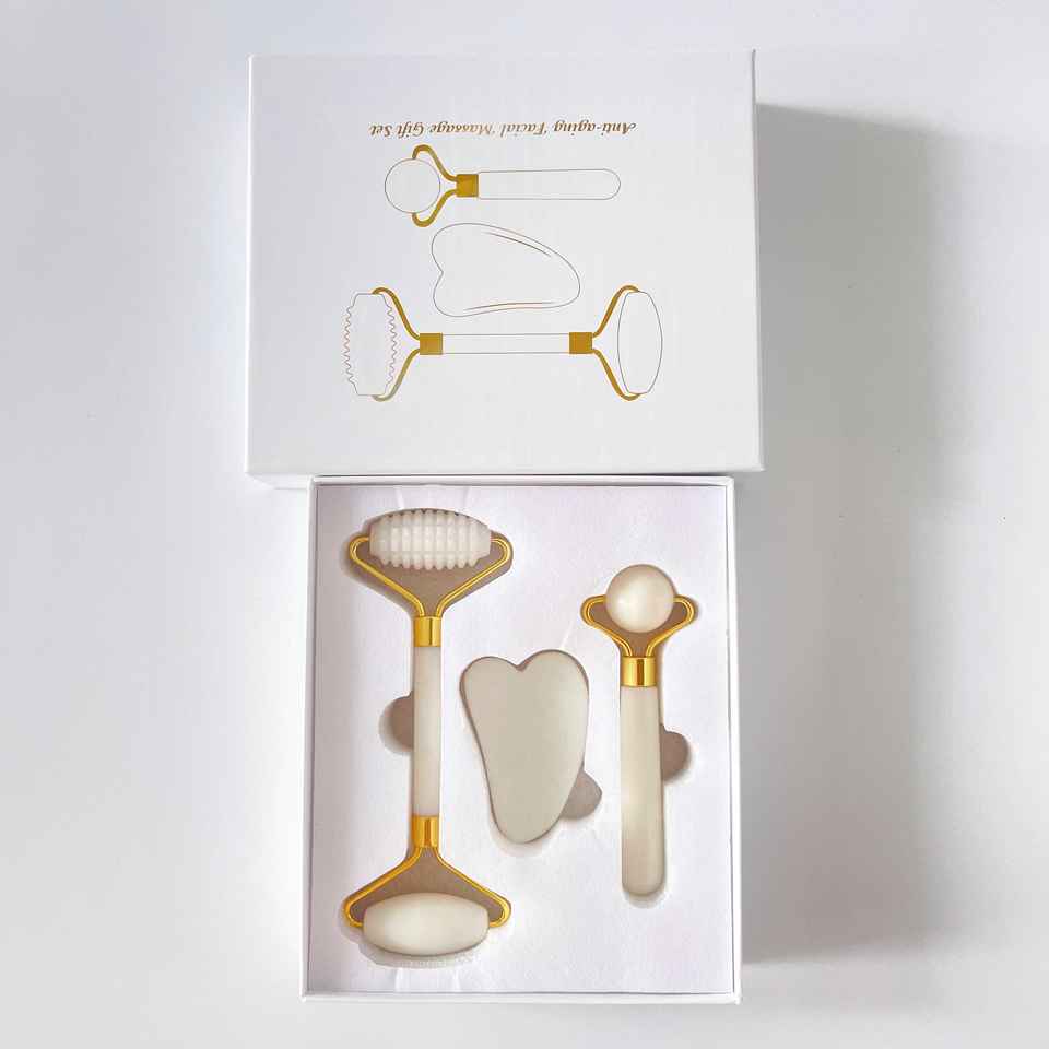 ชื่อผลิตภัณฑ์:กล่องชุดโรลเลอร์หยกกัวซาและหยกยกกระชับหน้าสีขาว