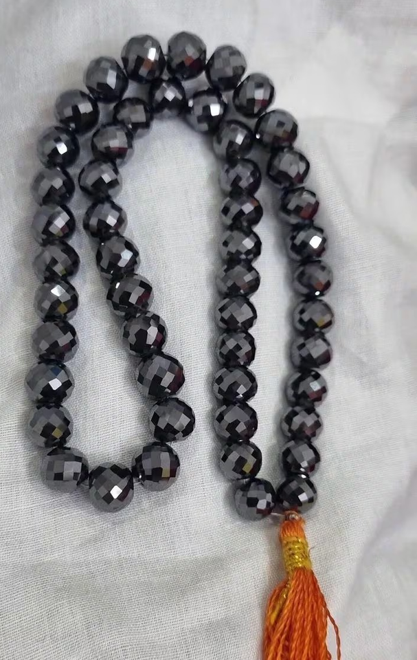 ลูกปัดเพชรโมอิสสีดำขนาด9ถึง10มม. ทำด้วยมือ