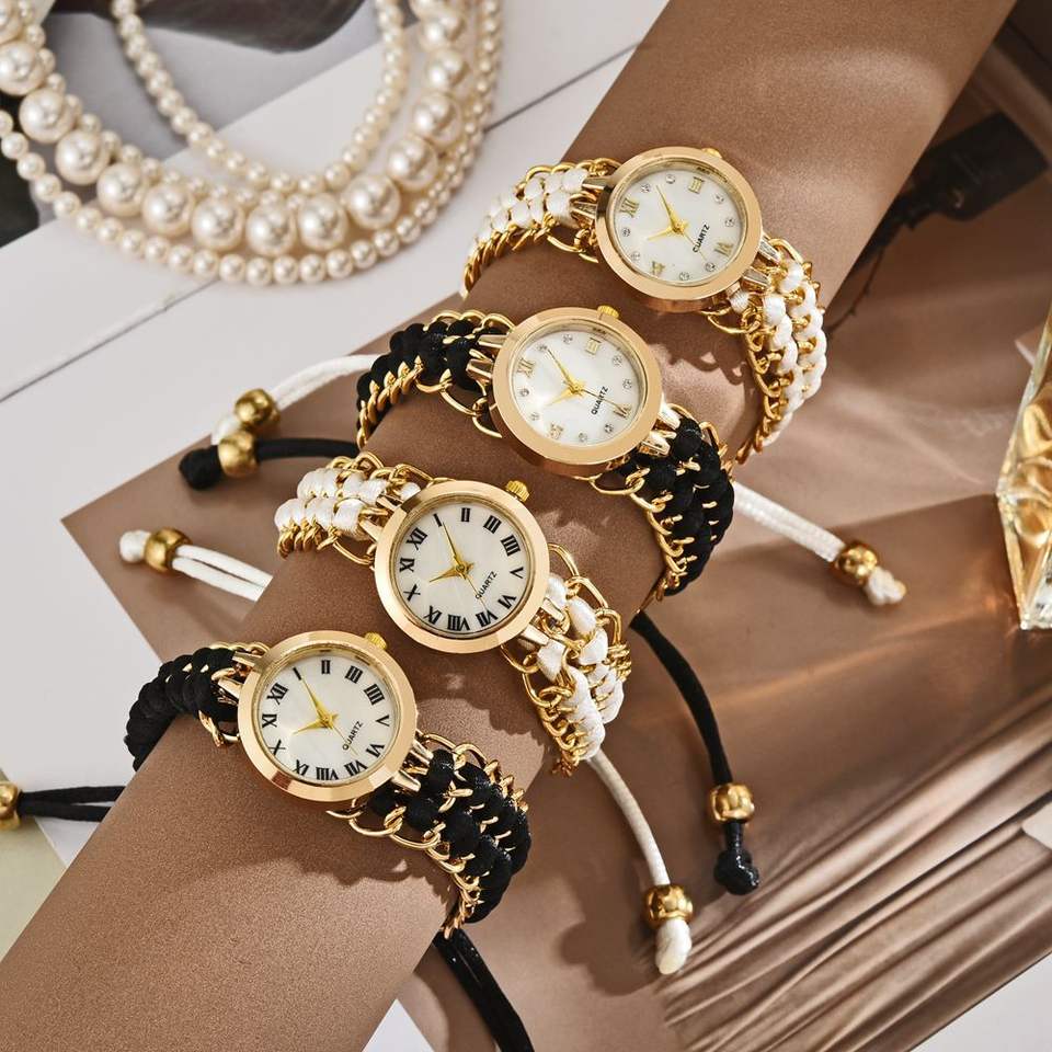 นาฬิกาข้อมือผู้หญิงสไตล์นักศึกษา ประดับเพชร ดีไซน์หรูหรา สายถักแบบสบายๆ ระบบควอตซ์ สำหรับนักศึกษาต่างชาติ