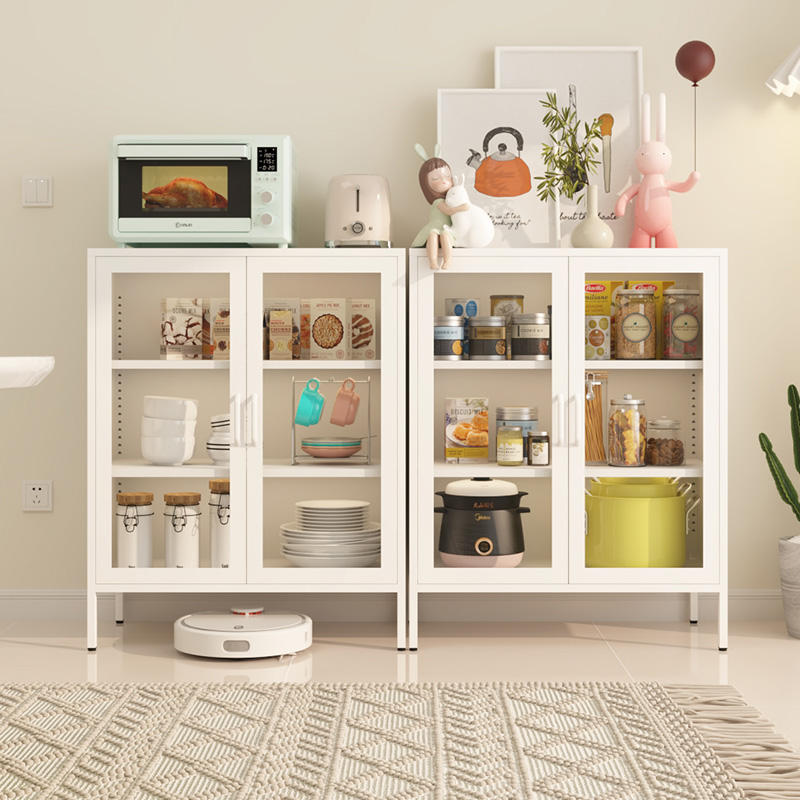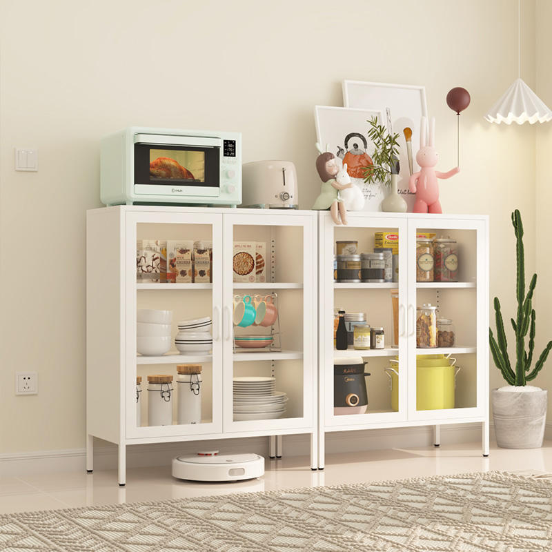 ตู้บุฟเฟต์สำหรับห้องนั่งเล่นตู้ลิ้นชักกระจกสองชั้น
