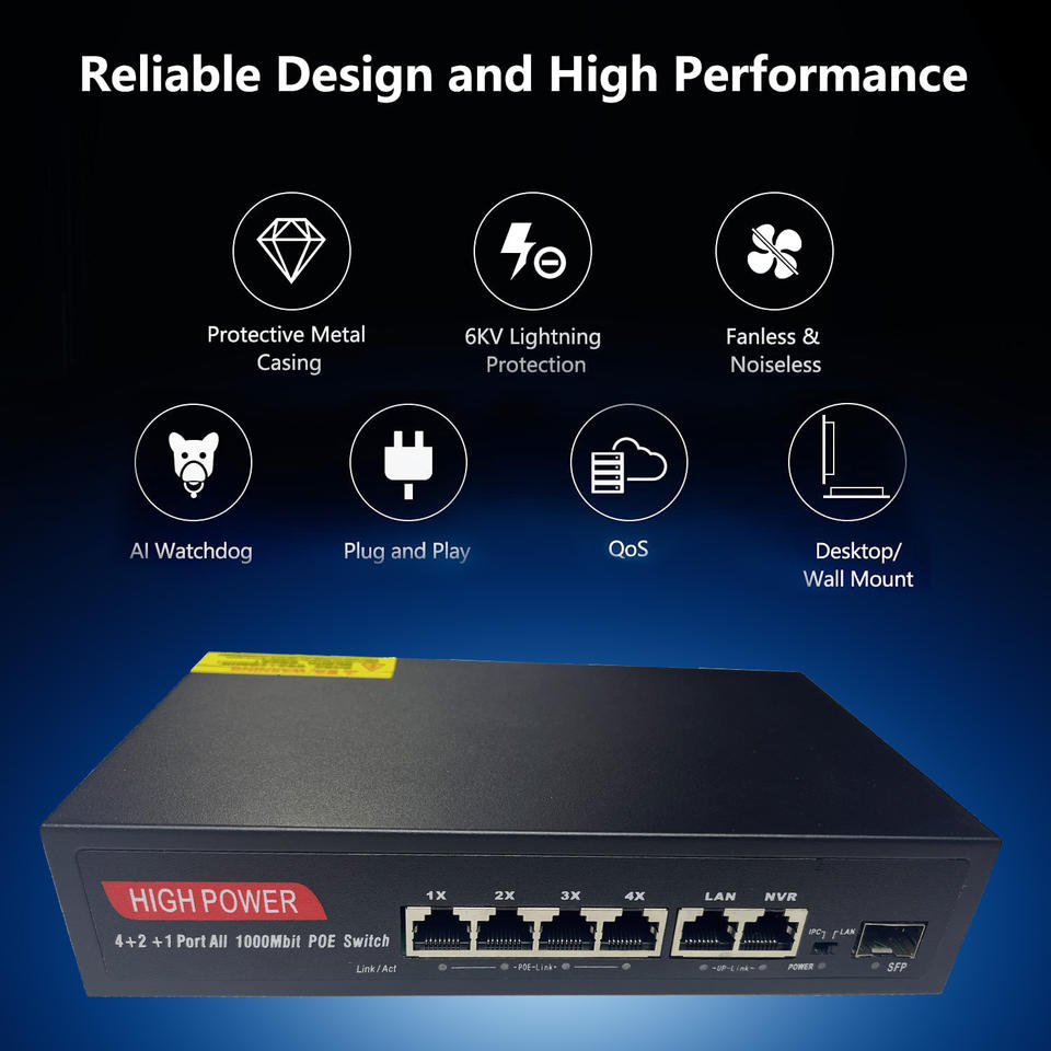 ราคาโรงงาน6พอร์ตกิกะบิตกล้องวงจรปิดเครือข่ายอีเธอร์เน็ต PoE สวิทช์48โวลต์10/100/1000เมตรสำหรับ Hikvision กล้อง IP