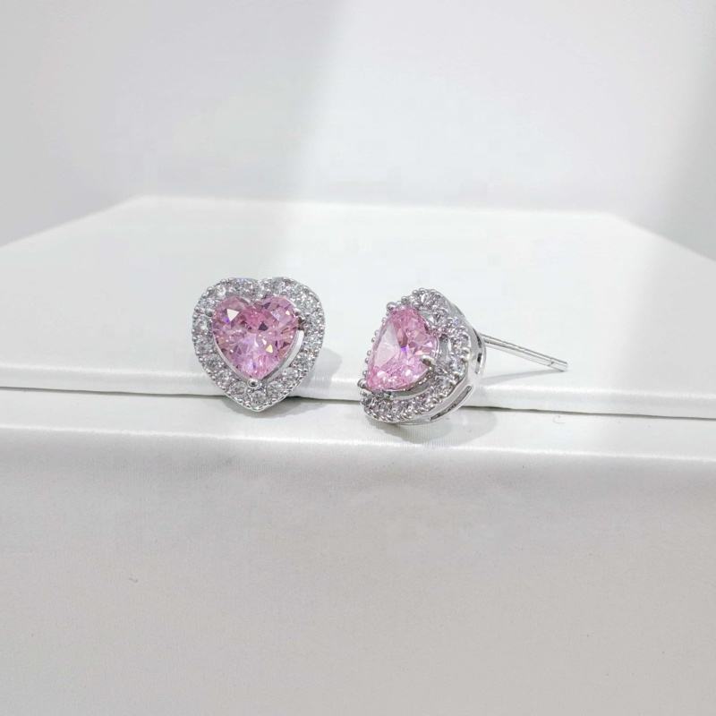 ต่างหูเงินแท้ 925 ประดับพลอยสีชมพู ดีไซน์สวยหรู คุณภาพสูง รูปหัวใจหลากสี ประดับเพชรซิร์โคเนียทรงโรสคัท สำหรับสาวๆ ราคาโรงงาน