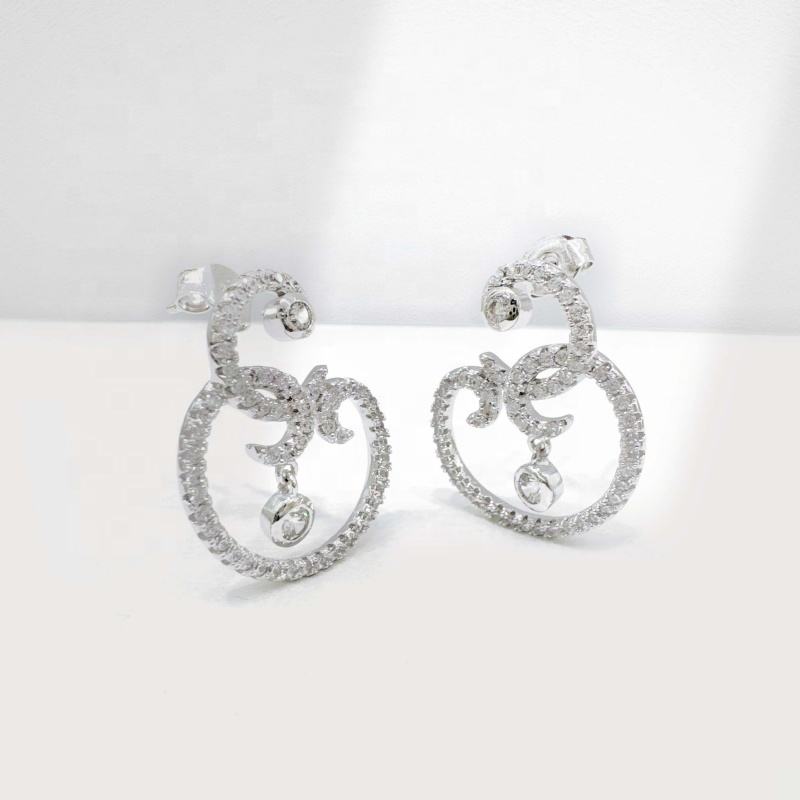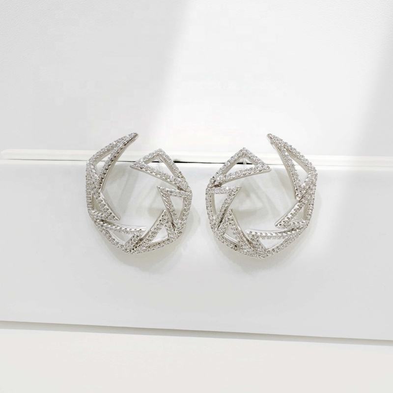 ต่างหูเงินแท้ 925 ชุบทองคำขาว ประดับเพชรซิคอน รูปทรงเรขาคณิต ดีไซน์ดอกไม้ สำหรับงานแต่งงาน แฟชั่นฮิปฮอป ผู้หญิง ต่างหูขนาดใหญ่