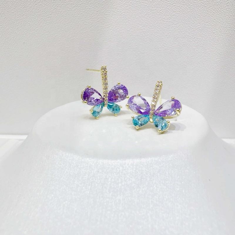 ต่างหูเงินแท้ 925 ราคาโรงงาน ป้องกันการแพ้ ดีไซน์หรูหรา ทันสมัย ประดับเพชรคิวบิกเซอร์โคเนียหลากสี รูปทรงผีเสื้อ