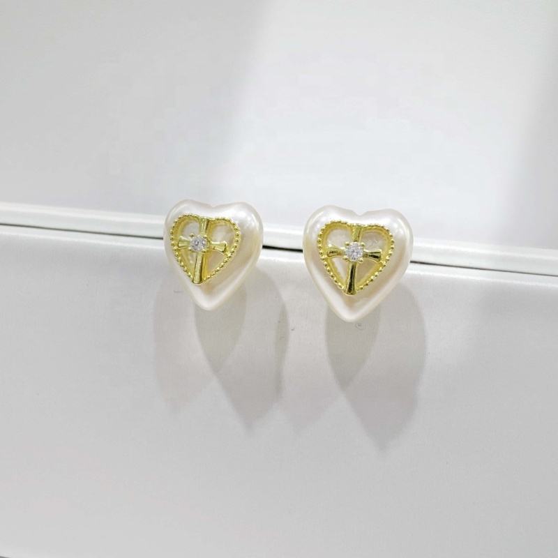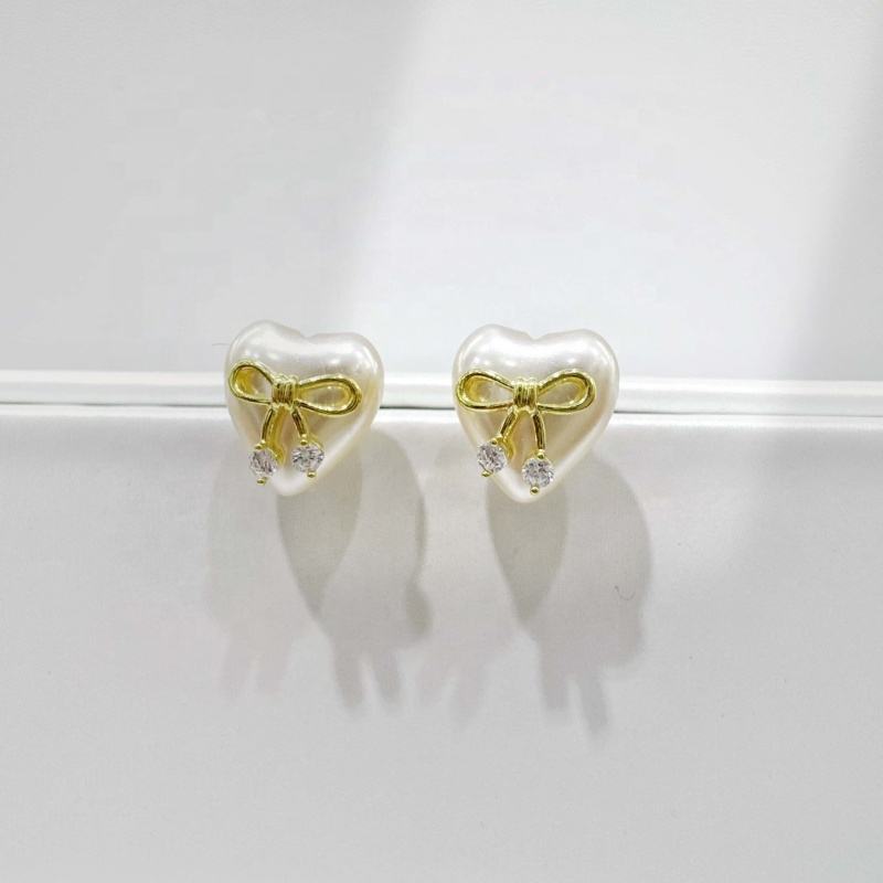 ต่างหูเงินแท้ 925 ราคาโรงงาน ขนาดเล็ก ป้องกันการแพ้ ดีไซน์วินเทจ โบว์เรียบง่าย รูปหัวใจ ประดับมุกน้ำจืด