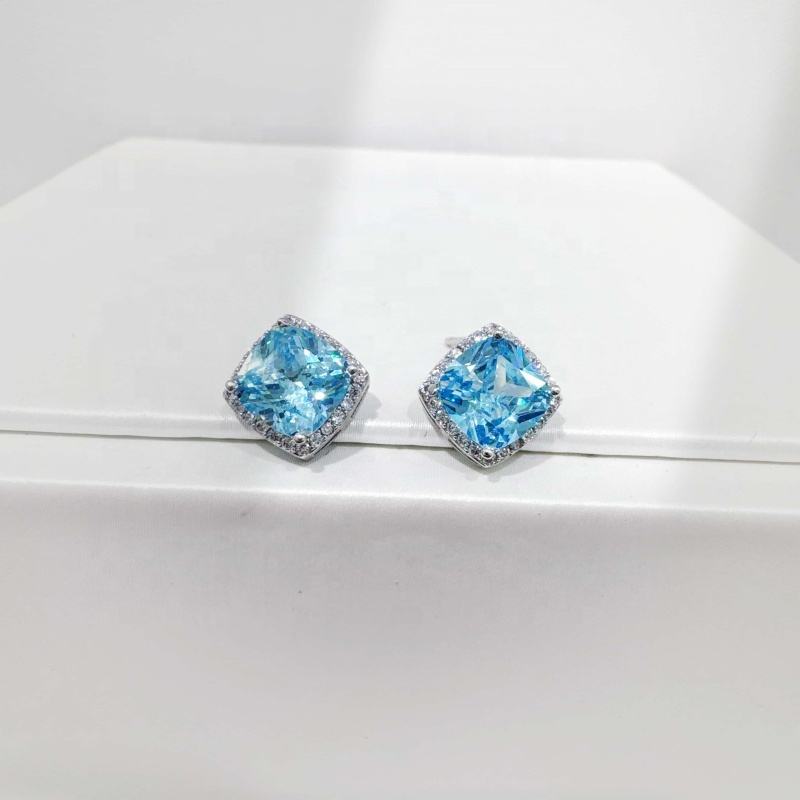 ต่างหูเงินแท้ 925 รูปดอกกุหลาบประดับพลอยธรรมชาติ แซฟไฟร์คลาสสิก ประดับเพชรคิวบิกเซอร์โคเนีย ราคาโรงงาน