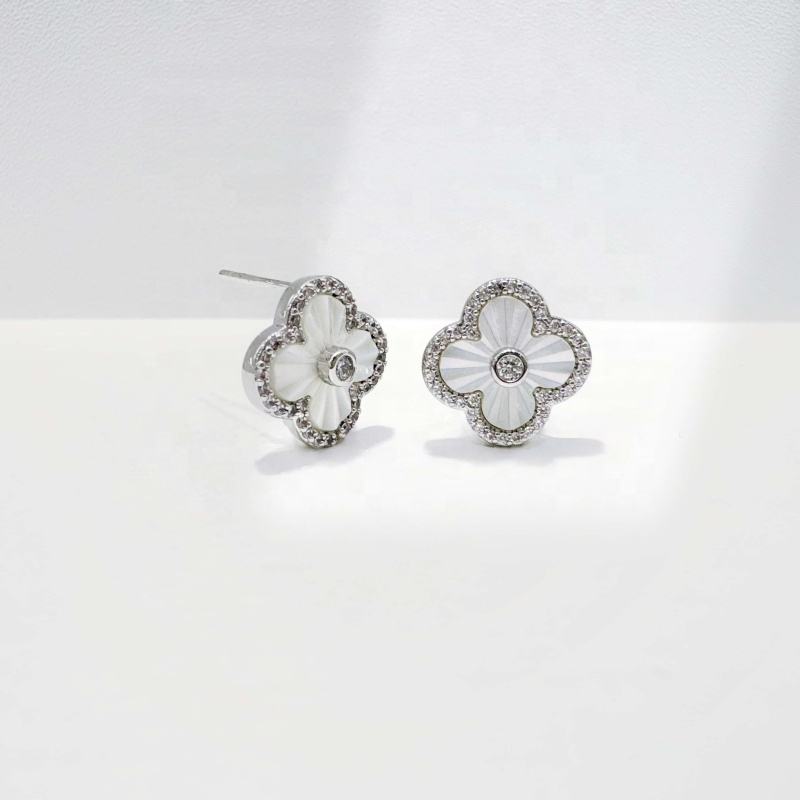 ต่างหูเงินแท้ 925 รูปโคลเวอร์ ประดับเพชรซิคอน ขนาดเล็ก ดีไซน์สวยหวาน เหมาะสำหรับสาวๆ ใส่ได้ทุกฤดู ราคาโรงงาน ไม่ก่อให้เกิดอาการแพ้