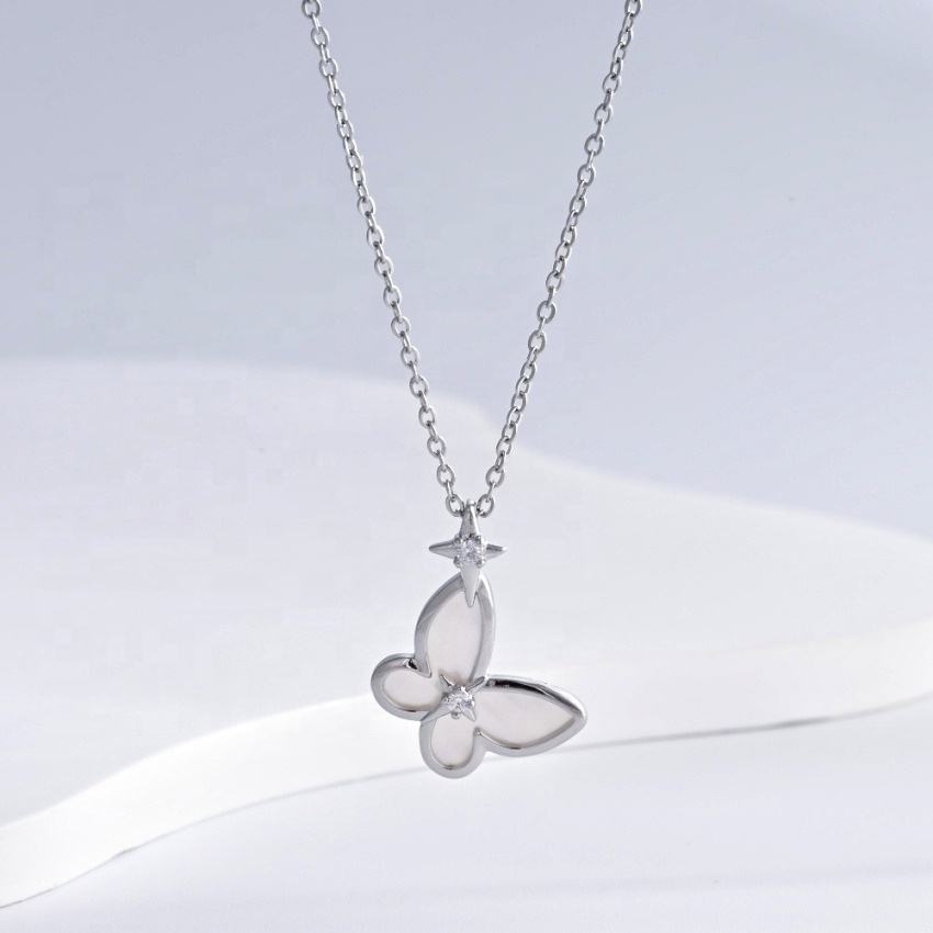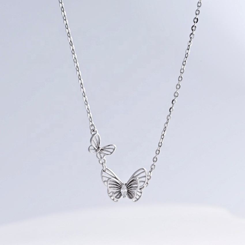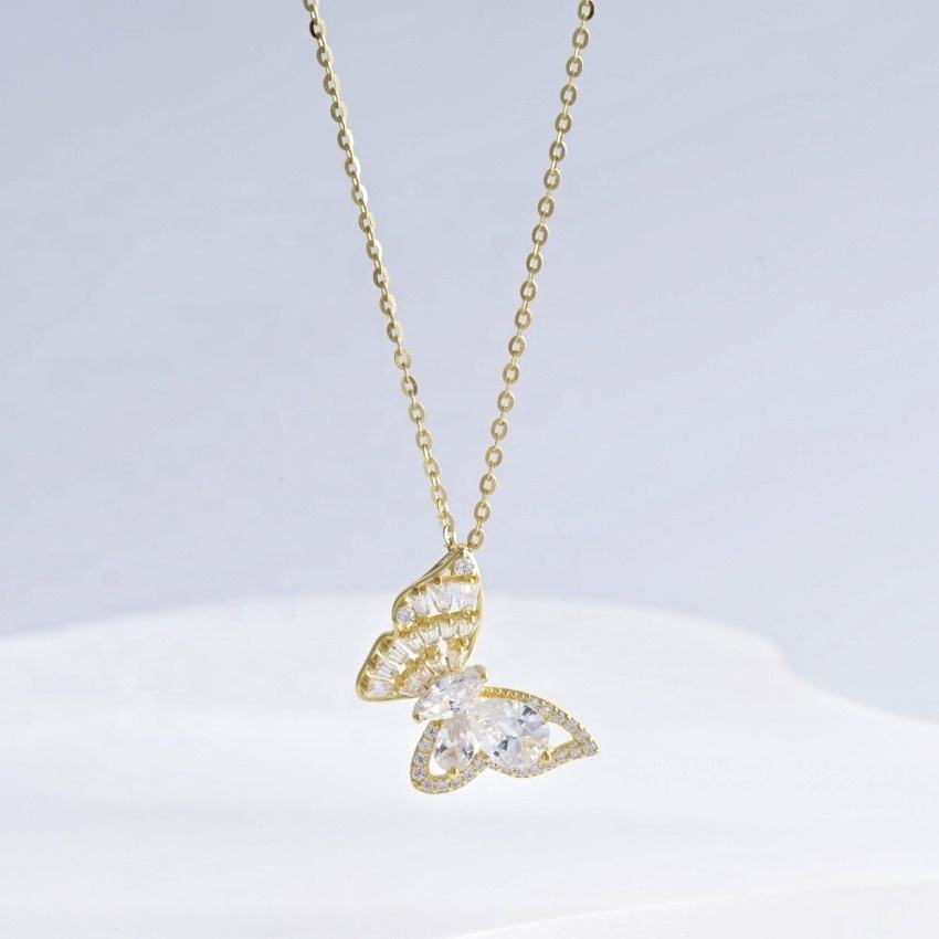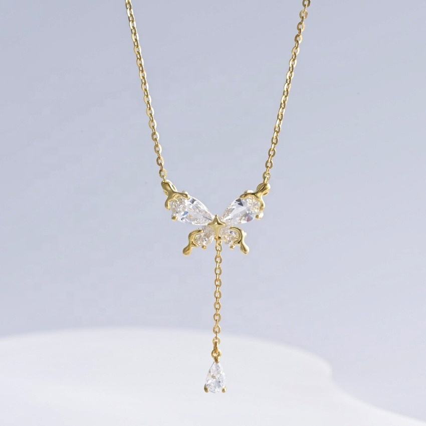 สร้อยคอเงินแท้ 925 ชุบทองรูปผีเสื้อ ประดับเพชรซิคอน ดีไซน์สวยหรู สำหรับสาวๆ ราคาโรงงาน