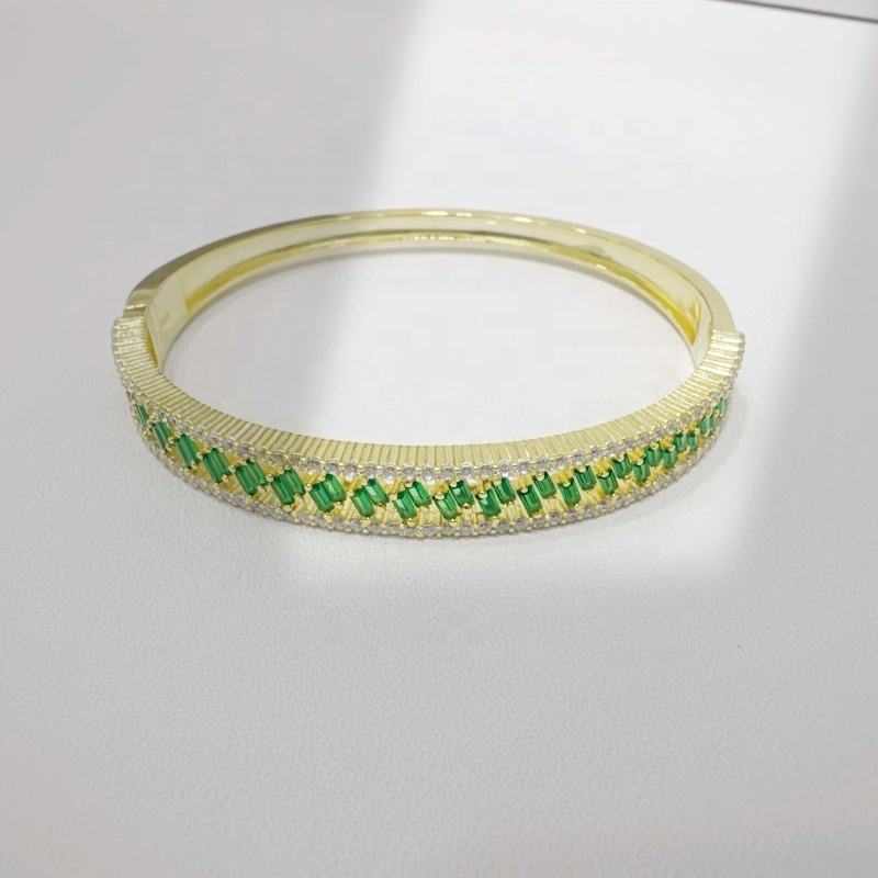 กำไลข้อมือแฟชั่นเงินแท้ 925 ประดับพลอยหลากสี ดีไซน์หรูหราสำหรับผู้หญิง ชุบทอง แบบหนา ประดับเพทายสีเขียวชมพู ราคาโรงงาน