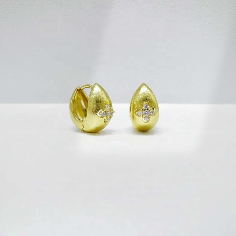 ต่างหูห่วงรูปหัวใจชุบทองคำขาว 925 ราคาโรงงาน ดีไซน์เกาหลีทันสมัย เรียบง่าย สวยงาม รูปโคลเวอร์