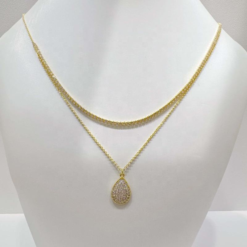 สร้อยคอเงินแท้ 925 ประดับเพชรซิคอนทรงหยดน้ำ ดีไซน์เรียบง่าย ทันสมัย พร้อมจี้รูปปม สำหรับสาวๆ ประดับมอสซาไนต์ ชุบทอง 18k สร้อยคอแบบซ้อนชั้น สไตล์คุณแม่ ราคาโรงงาน