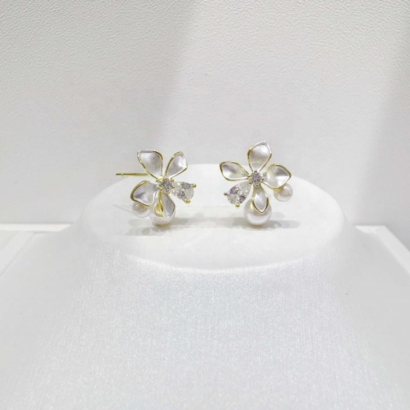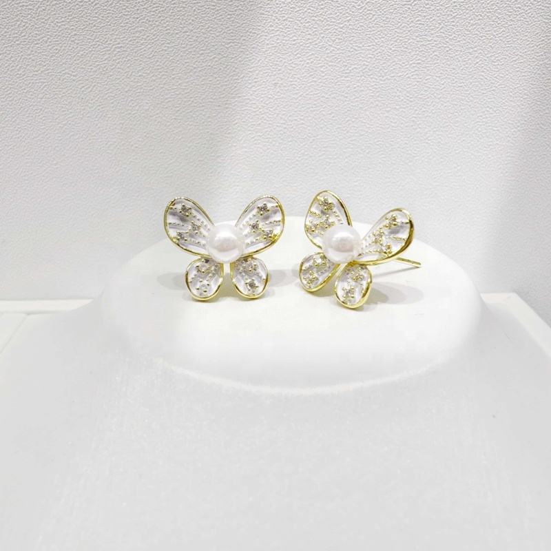 ต่างหูเงินแท้ 925 สีสันสดใส สไตล์วินเทจ สำหรับสาวๆ ประดับด้วยดอกไม้เคลือบสีดำ ผีเสื้อ และมุก ราคาโรงงาน