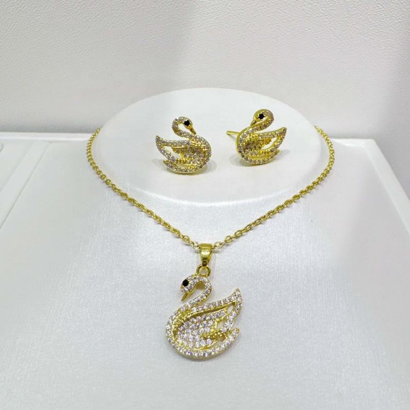 ราคาโรงงาน ชุดเครื่องประดับเงินแท้ 925 ประดับเซอร์โคเนีย แฟชั่นสำหรับผู้หญิง คุณภาพสูง ชุด 2 ชิ้น ต่างหูและสร้อยคอสุดหรู ลายสัตว์