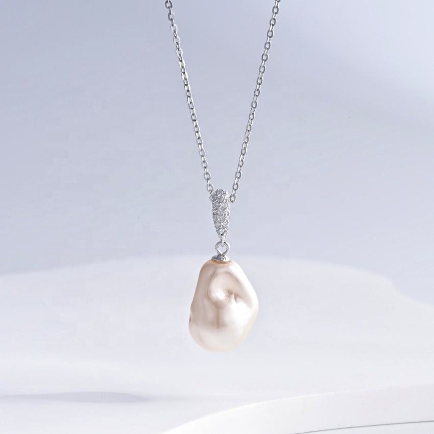 สร้อยคอไข่มุกบาร็อคเงินแท้ 925 ชุบทองคำขาว ราคาโรงงาน สไตล์วินเทจ สำหรับคุณแม่ ผู้หญิง งานแต่งงาน
