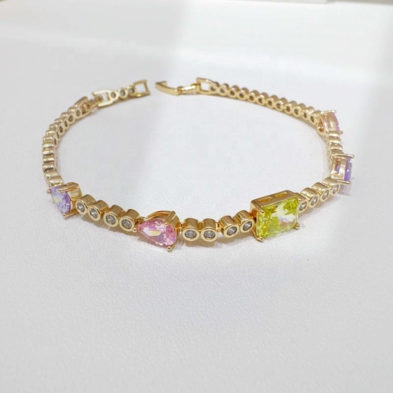 ราคาโรงงาน สร้อยข้อมือเงินแท้ 925 ประดับพลอยหลากสี ชุบทองหรูหรา สร้อยข้อมือเพื่อนซี้ประดับเพชรซิคอนสำหรับสาวๆ