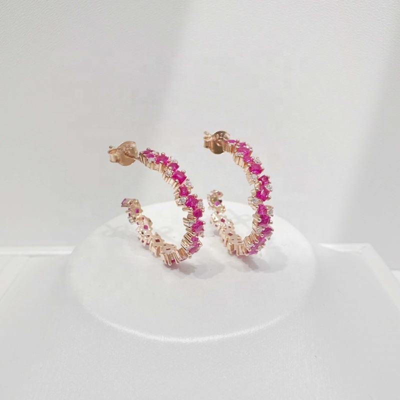 ต่างหูเงินแท้ 925 สไตล์เกาหลี ประดับเพชรซีกอนสีชมพูทรงไม่สมมาตร ดีไซน์หรูหราสำหรับผู้หญิง ราคาโรงงาน