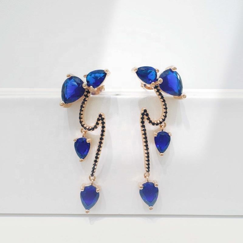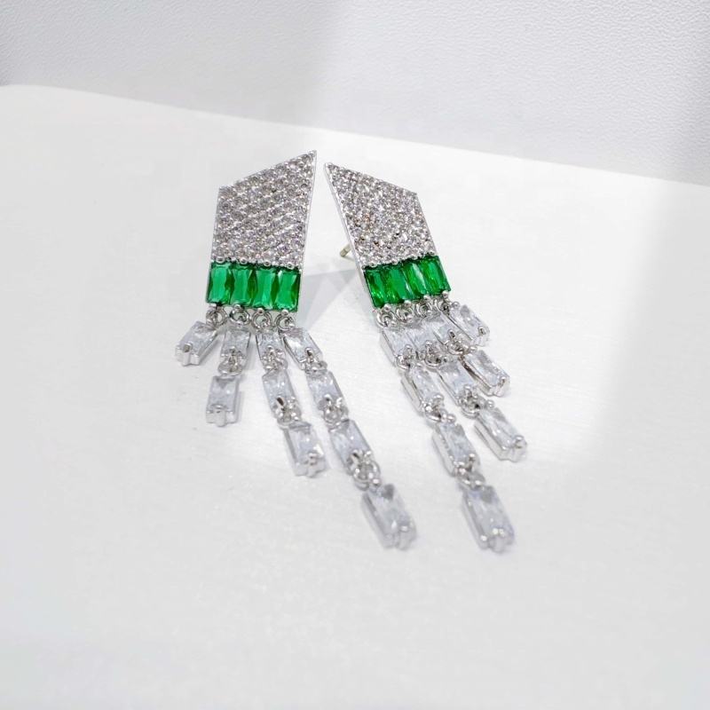 ต่างหูพู่หลากสีเงินแท้ 925 ราคาโรงงาน สไตล์วินเทจหรูหราประดับมรกตและไพลินสำหรับผู้หญิง