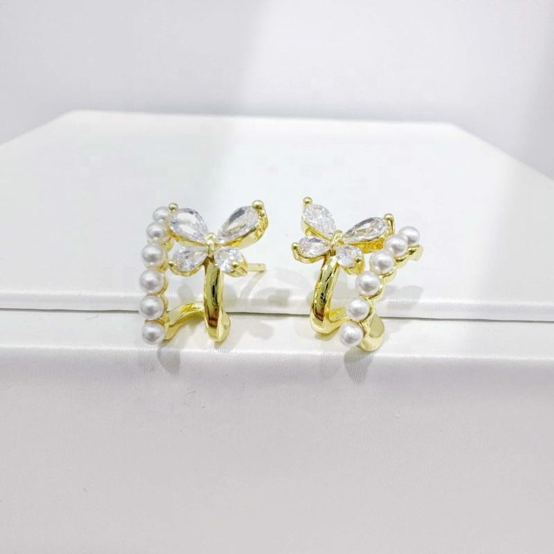 ต่างหูเงินแท้ 925 รูปผีเสื้อฤดูร้อน ชุบทองวินเทจ สำหรับงานแต่งงาน ดีไซน์รูปหัวใจประดับมุก สำหรับผู้หญิง ราคาโรงงาน