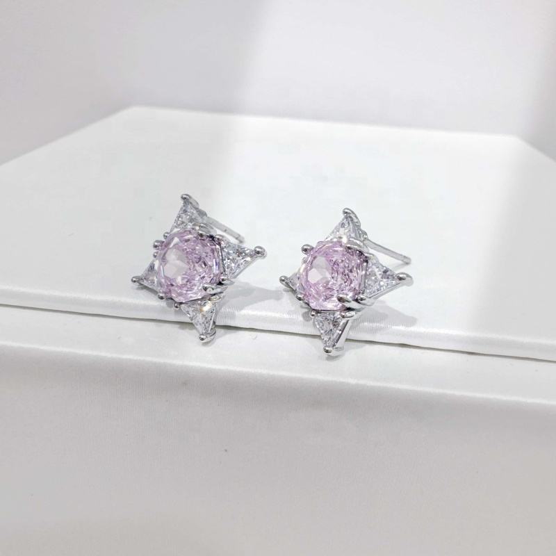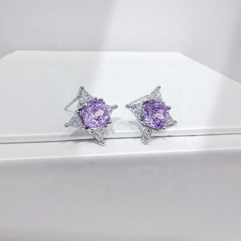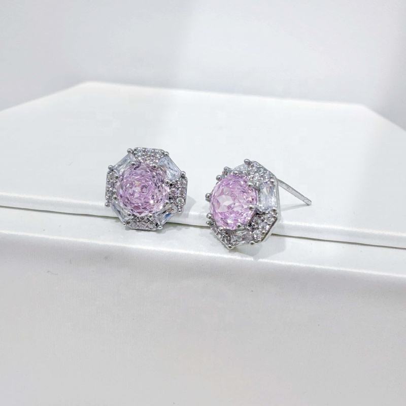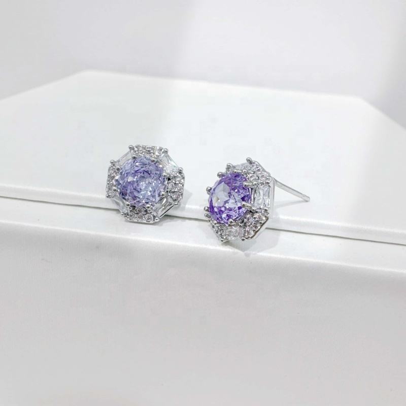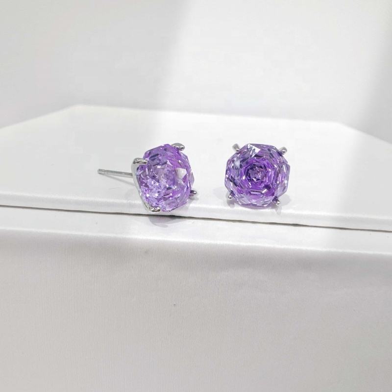 ต่างหูเงินแท้ 925 ประดับพลอยสีชมพูม่วง ดีไซน์เก๋ ทันสมัย ทรงโรสคัท ประดับเพชรซิร์โคเนีย เรียบง่าย สำหรับผู้หญิง ราคาโรงงาน