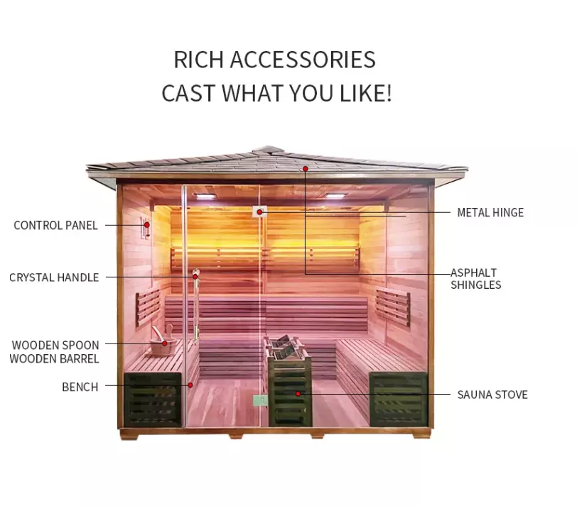ตู้อบซาวน่าอบไอน้ำแบบดั้งเดิม,ซาวน่าไม้ซีดาร์สีแดงสำหรับ6คนกลางแจ้ง