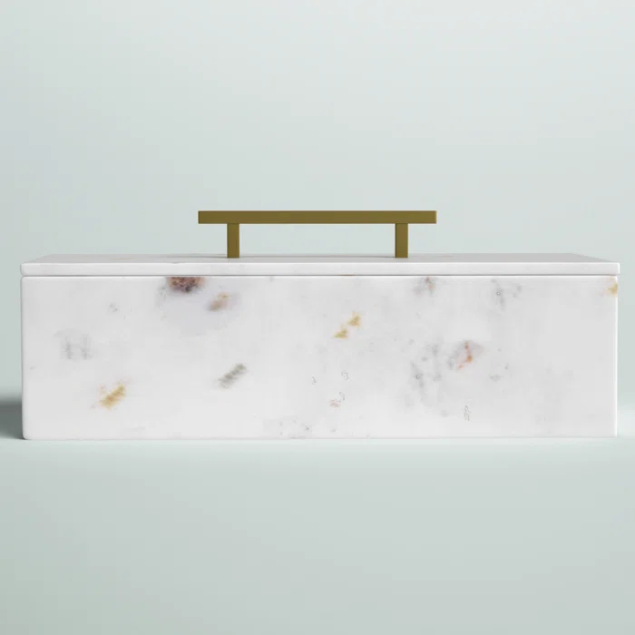 กล่องเครื่องประดับหินอ่อนสี่เหลี่ยมขนาดกลางปรับแต่งได้ด้ามจับทองเหลืองจากจีนของขวัญที่ดีที่สุดรูปปั้นกล่องเครื่องประดับ
